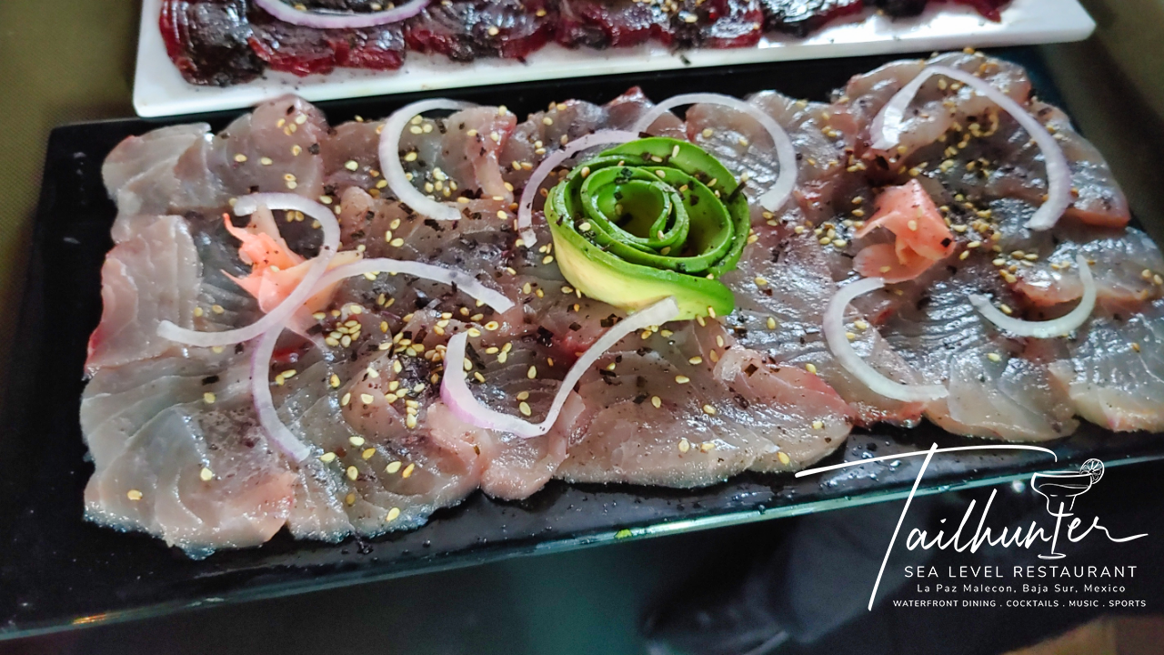 Fresh plate of yellowtail sashime at our Tailhunter Restaurant brought in by a fisherman for us to prepare!