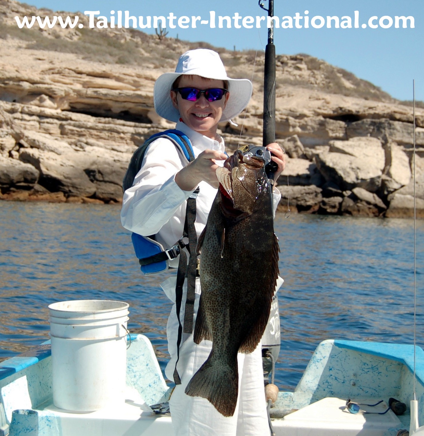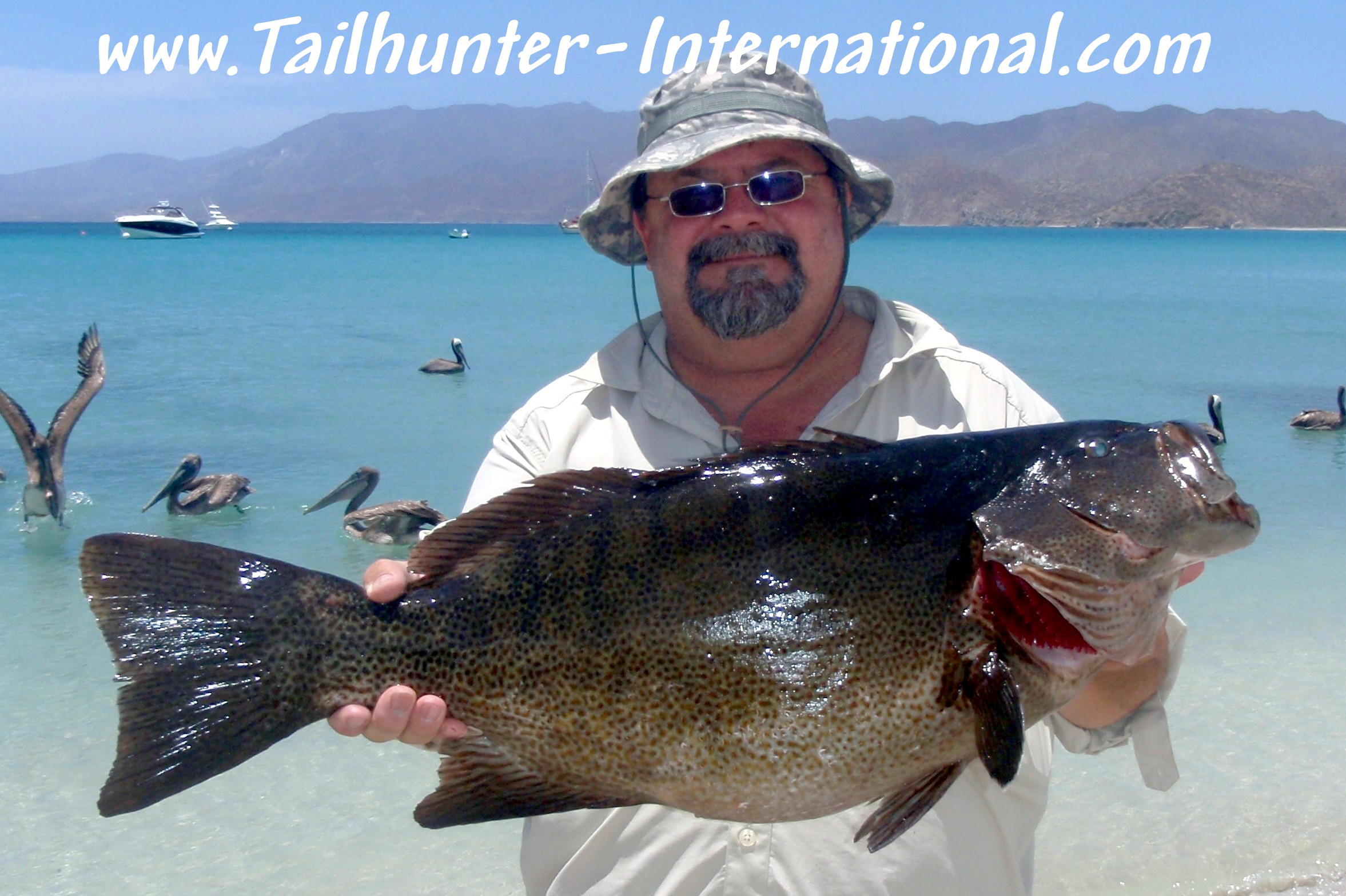 Nice trophy cabrilla (seabass) held up by Alex Voget who was fishing with our Tailhunter Las Arenas Fleet. It's been a nice year for big cabrilla like this one and a great catch for Alex. They took it back to their hotel and tossed the filets on the barbecue!