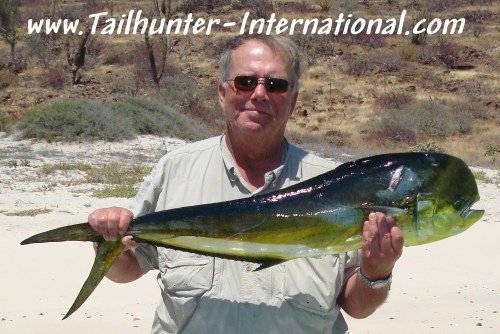 Windy conditions this week made outside fishing less than ideal and dorado fishing a bit tougher, but Dr. Desmond Sjauwfoekloy from Orange Co. CA got this nice one fishing north of La Paz around Espiritu Santo Island.