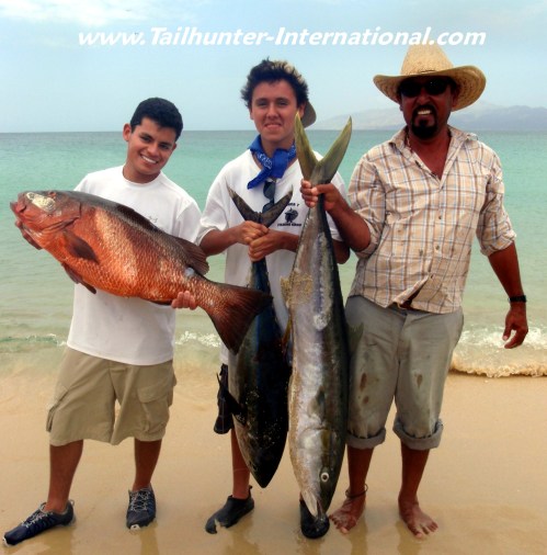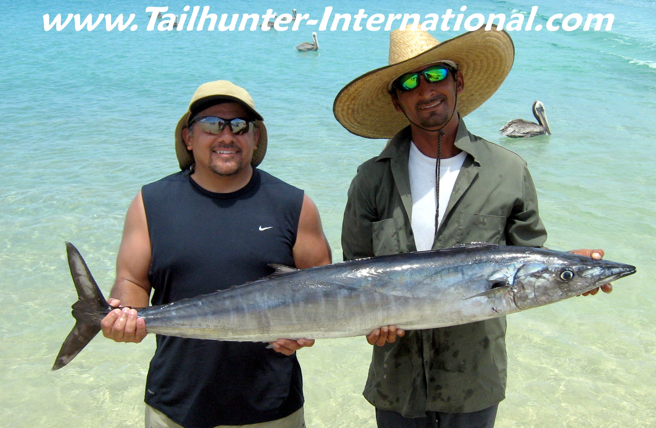 Except for that glitch, it was pretty good fishing. Wahoo continued to be a bonus at the north and south ends of Cerralvo Island. Using big chunks of giant squid, tuna between 10 and 80 pounds could be caught within yards of the beach. Marauding schools of free-swimming dorado could pop up at any time or be found in the current lines or around the buoys in a number of spots. Big roosters were in the surf and trophy pargo kept boiling. Great variety!