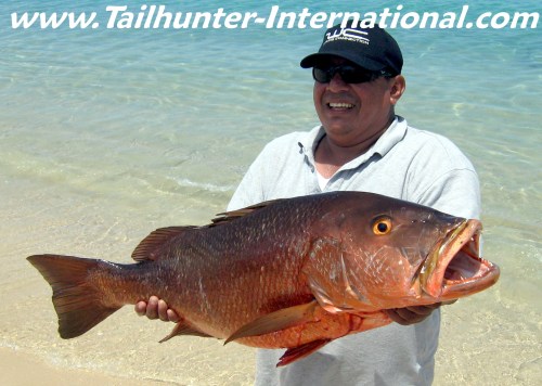 Some guys come for years and make numerous trips trying to catch a big pargo. Luis Cardenas from Los Angeles comes down for the first time and on his first day on the water rips this huge dog tooth snapper. I can't believe we still have these big pargo running around here. Normally, pargo season is in the spring.
