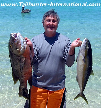 Ernie Correa from S.California was also lucky enough to stick it to a big dog-tooth this week where first-timers outdid the veterans when it came to pulling on pargo. These fish are in really shallow waters right and willing to crash the surface when chummed with either live bait or dead bait.