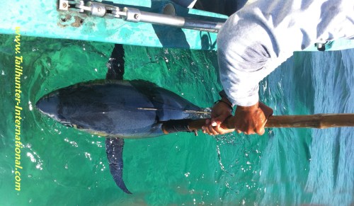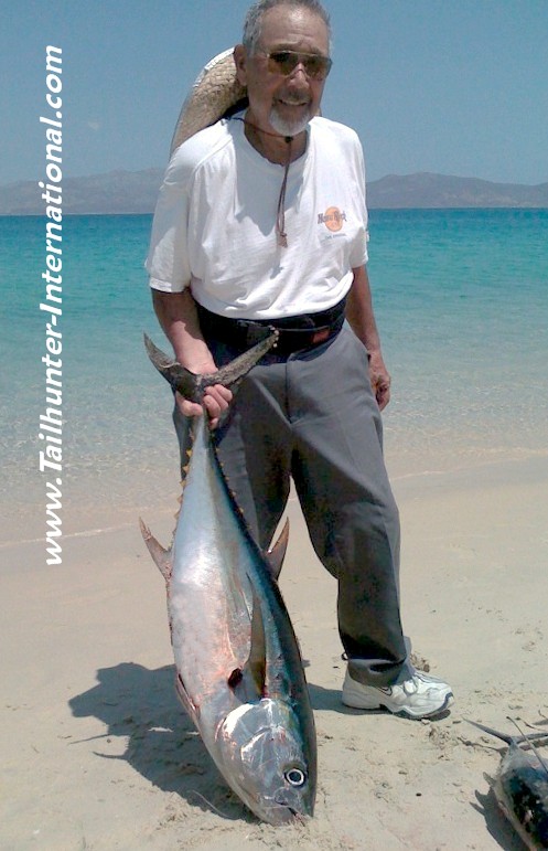 Tak Okamoto is "80-something-years-old" and he looks tired. But that's because he spent almost 90 minutes in the Baja sun putting the wood to this 39-pound-yellowfin as well as several other tuna. Tak is from Gardena CA