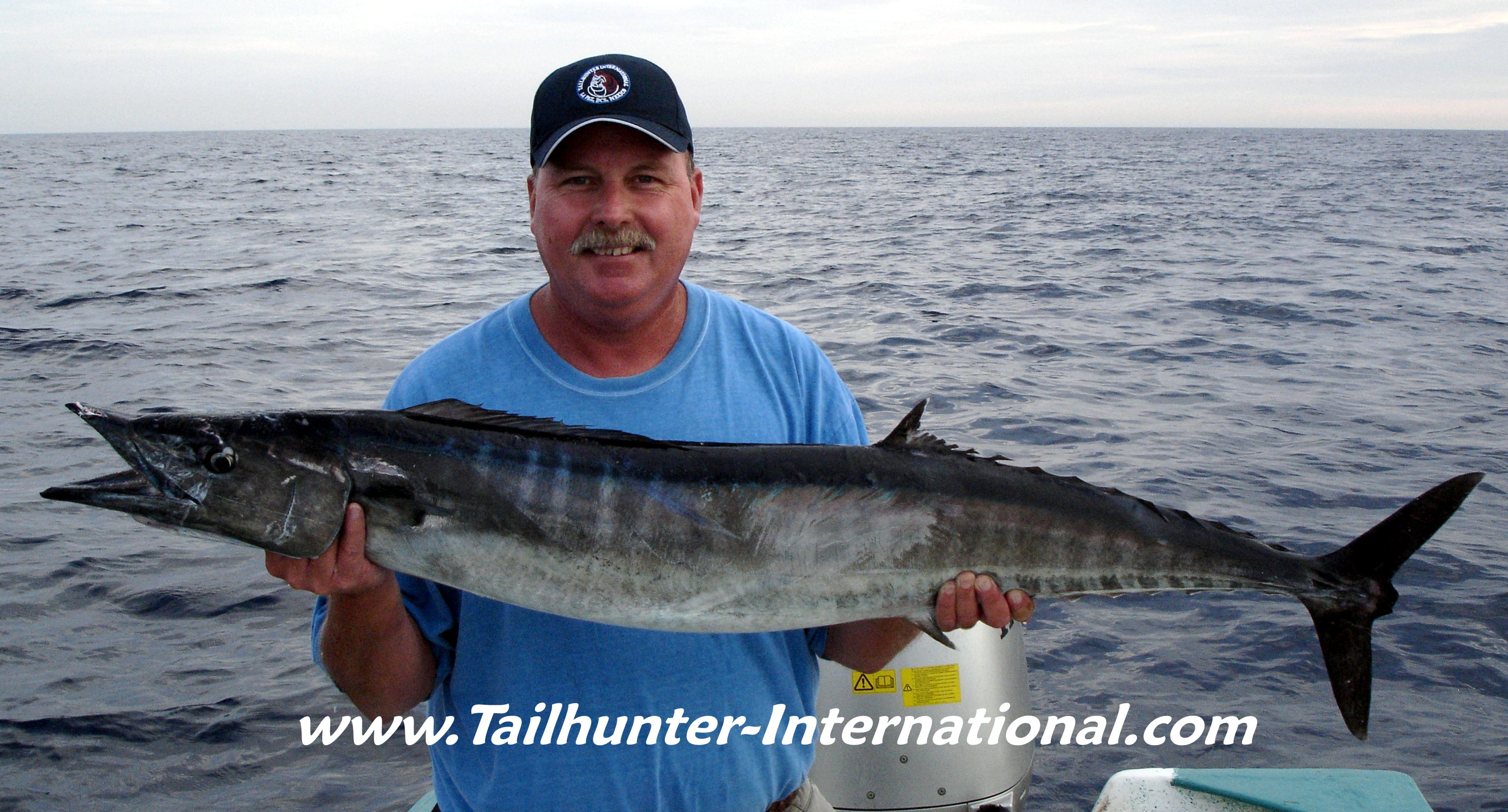 Ron Lopez and Captain Adolfo ("Yofo") blew up the fish over 3 days. First day, Ron spanked the tuna. 2nd day he got more tuna and wahoo. Third day, Ron fought a marlin estimated at 350 pounds for the better part of the day only to have it bust off at the boat. (He was going to release it anyway). Then on the way back to the beach he dropped back a Rapala and got this wahoo!