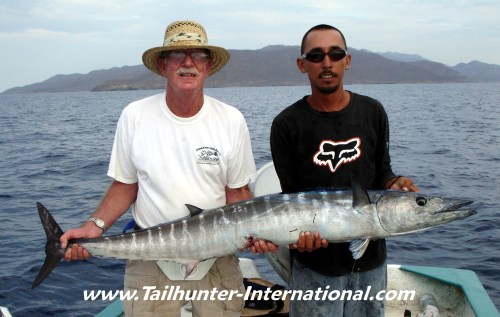 About the only things that aren’t eating the sqiud are the wahoo. Several days the wahoo were thick enough on the surface that guys said they were freeswimming around the pangas, but wouldn’t take any baits. Wahoo are a bit like cats. If you have a ball just sitting on the carpet, the cat isn’t interested. If you ROLL the ball past the cat, it attacks. Wahoo seem to be the same way.