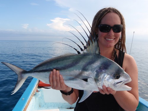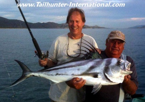 Dark Rapalas were the ticket with fish doing single and double hook-ups at times and free-swimmers milling around our pangas!