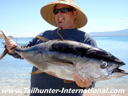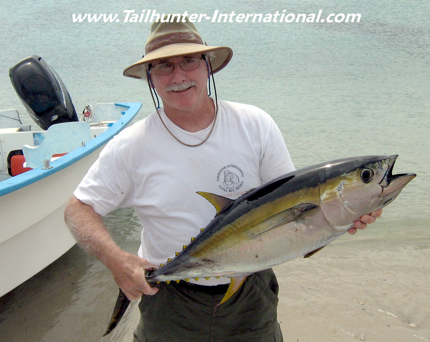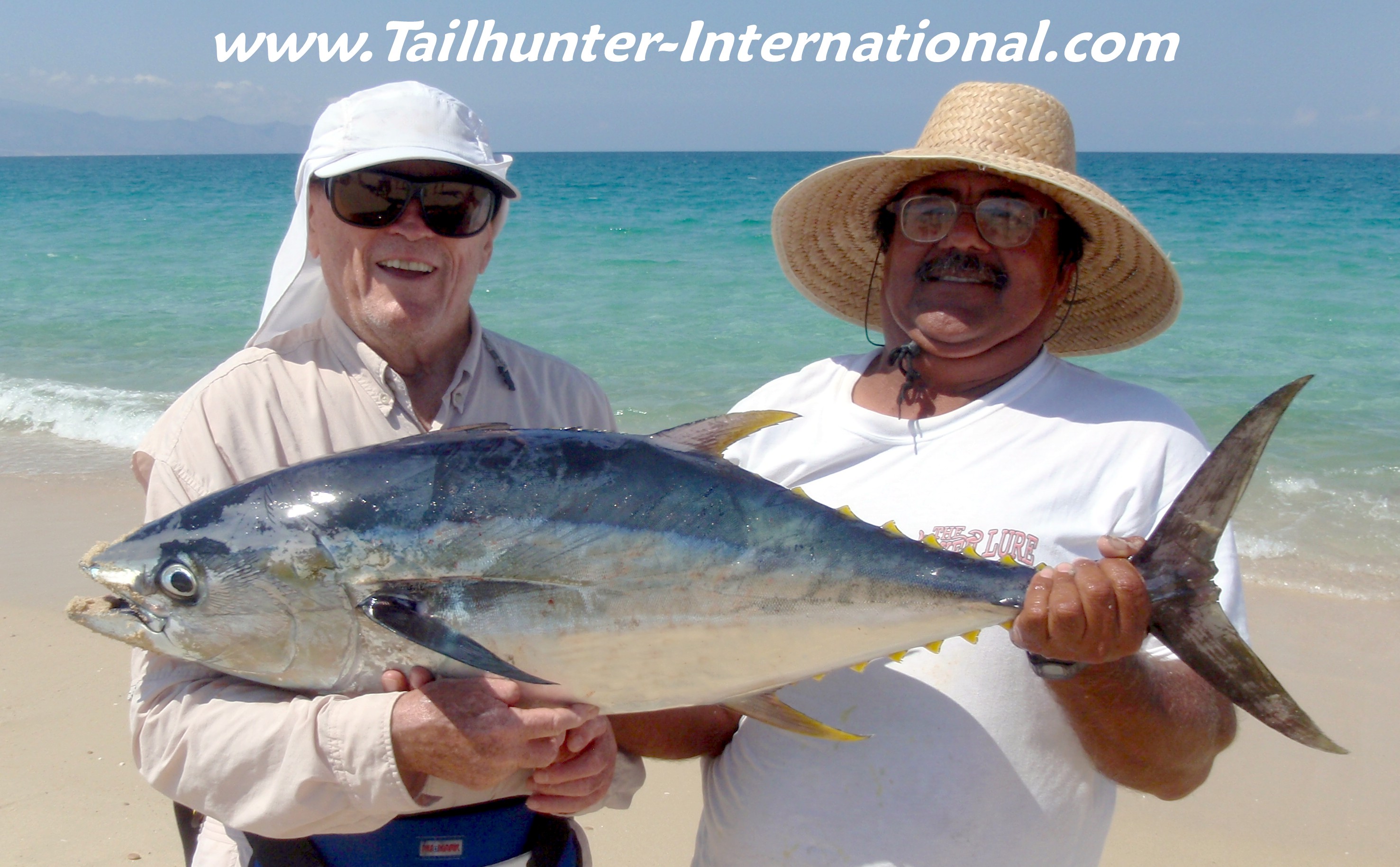 The tuna hit in a number of areas. As mentioned, Punta Gorda just north of Ventana/ El Sargento was hot only about 200 yards from the beach area. So was the “rock highway” south of Cerralvo Island and also Punta Perrico not more than 100 yards from the cliffs. These were good quality fish. Not too many “footballs.” These were solid hefty fish from 25-45 pounds that really put the hurt on a few anglers.