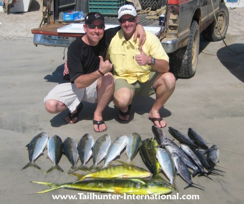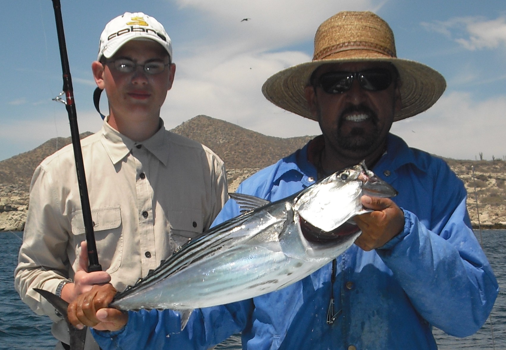 Even if fishing is slow for other species, schools of voracious hard-fighting bonito like this one with Robinsion and Capt. Jorge off Punta Perrico still provide fun light tackle action.