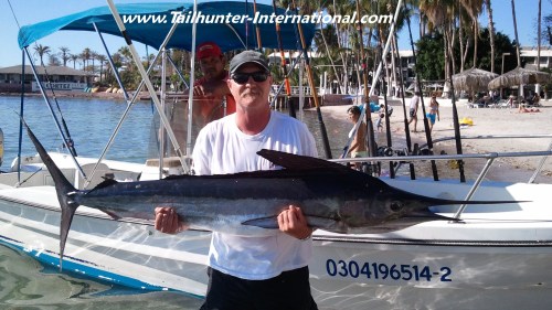 Interestingly, that’s where we’re seeing marlin and sailfish seeming by the dozens sunning themselves and, although some are biting I think if we kick it up just a degree or two more, it’s gonna bust out WFO. Let the full moon stuff pass and the water warm just a hair and BOOM! It’s gonna be billfish rodeo time! In fact, by the time you’re reading this, we might already be in it. We have had a few flurries and fortunately, most of the billfish are getting released, but a few have been taken and we’re seeing that their bellies are full of squid like the schools balling up on the east side of Cerralvo Island and I think with the full moon that just passed the squid were coming up from the deep and the marlin were “on the chew” all night long stuffing themselves! So…maybe we better get ready! When the buffet table gets taken away, the billfish might just come charging!
