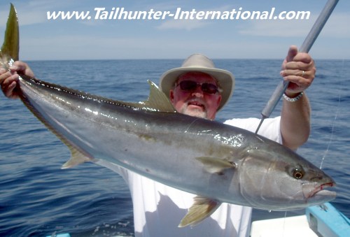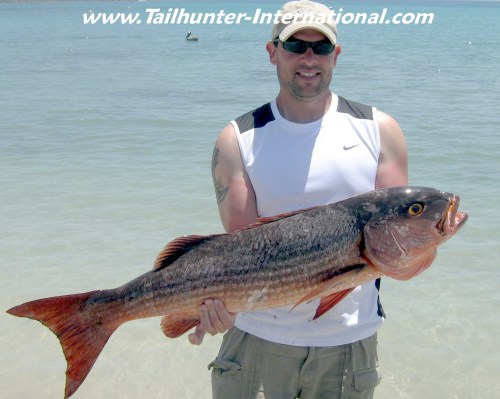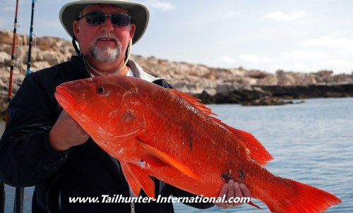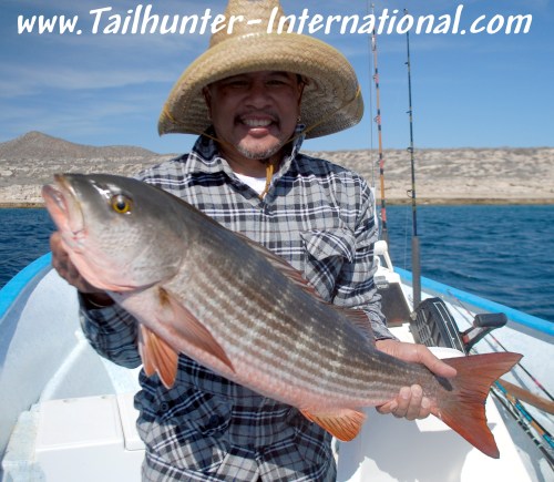 This trophy pargo bruised him, beat him and nearly pulled him out've the boat, but Al Jones got the last laugh (plus a big plate of grilled pargo at the Tailhunter Restaurant that night!) taking this bad boy out've the rocks just outside of Bahia de Los Muertos where the pargo continue to crash and shred and frustrate anglers.