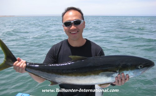 There weren't alot of them around this past week, but the yellowtail we got into were all quality fish like this one held by Ron Hepner at Balandra Beach taken on the El Bajo Seamount. Ron is from Salt Lake City UT.