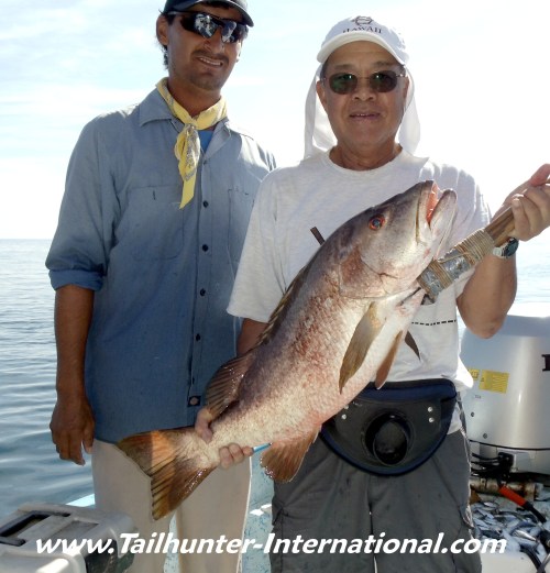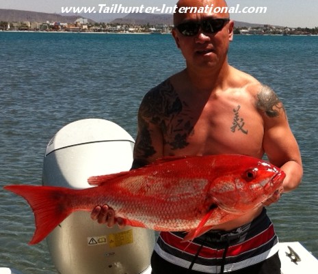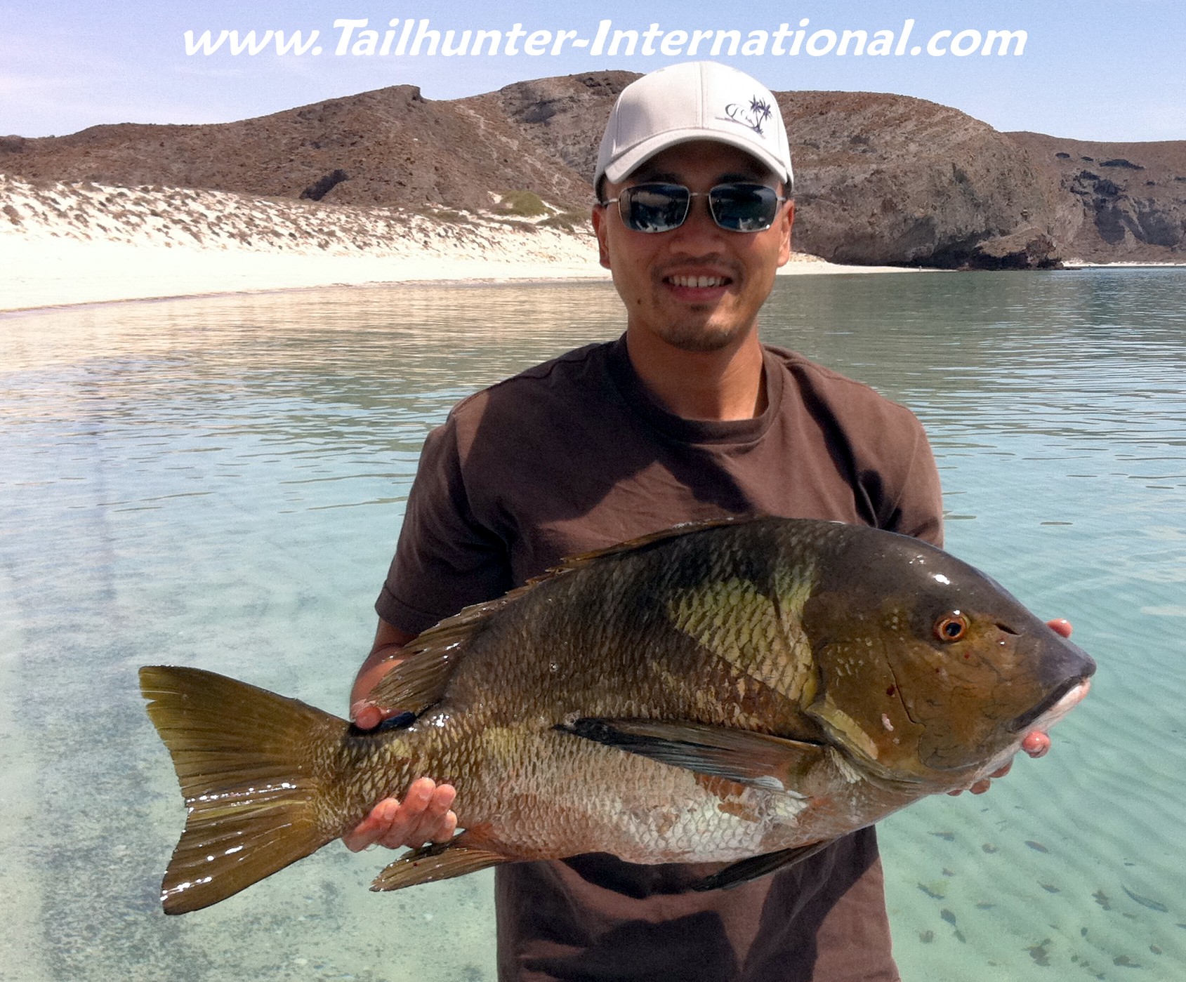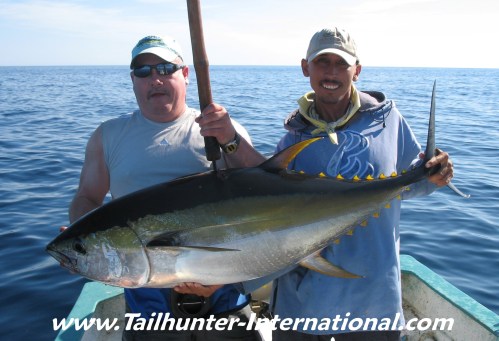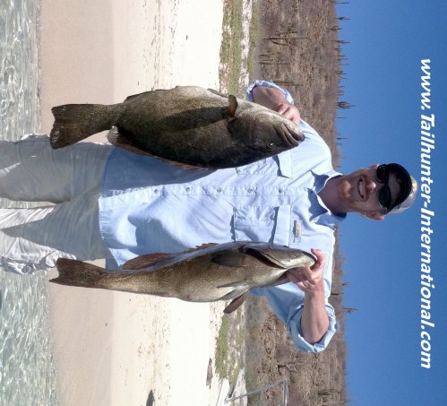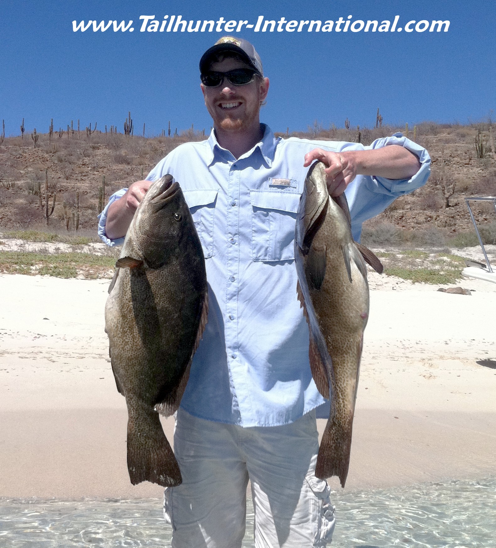 The roosters were biting for BOTH our Tailhunter La Paz and Tailhunter Las Arenas fleets. Captain Jorge with our Las Arenas fleet helps Marsha Schearer pose with this slug rooster caught in shallow water just outside Bahia de Los Muertos.