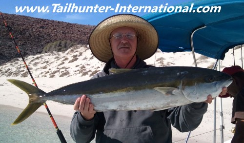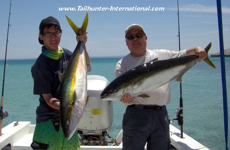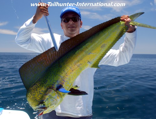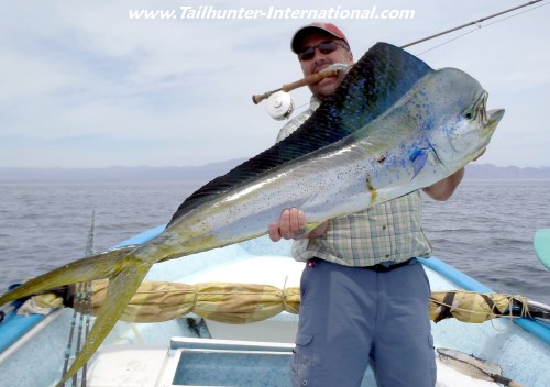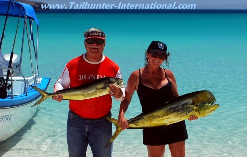 Tailhunter's own Jilly Roldan got into the nice dorado bite late this week posing with San Diego's Joe Jacobs in the blue waters of Balandra Bay north of La Paz. They also got roosterfish and small yellowtail, but ran into a spot of dorado that blew up on them and they lost count of the fish with double and triple hookups!