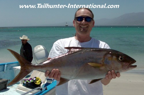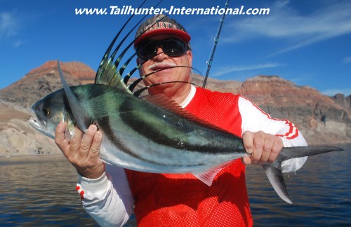 For alot of our clients and friends this week, it was their first time tangling with roosterfish and underlines why La Paz waters are called the "roosterfish capital of the world." Joe Jacobs from San Diego took this nice one in Pilot's Cove north of La Paz and released it.