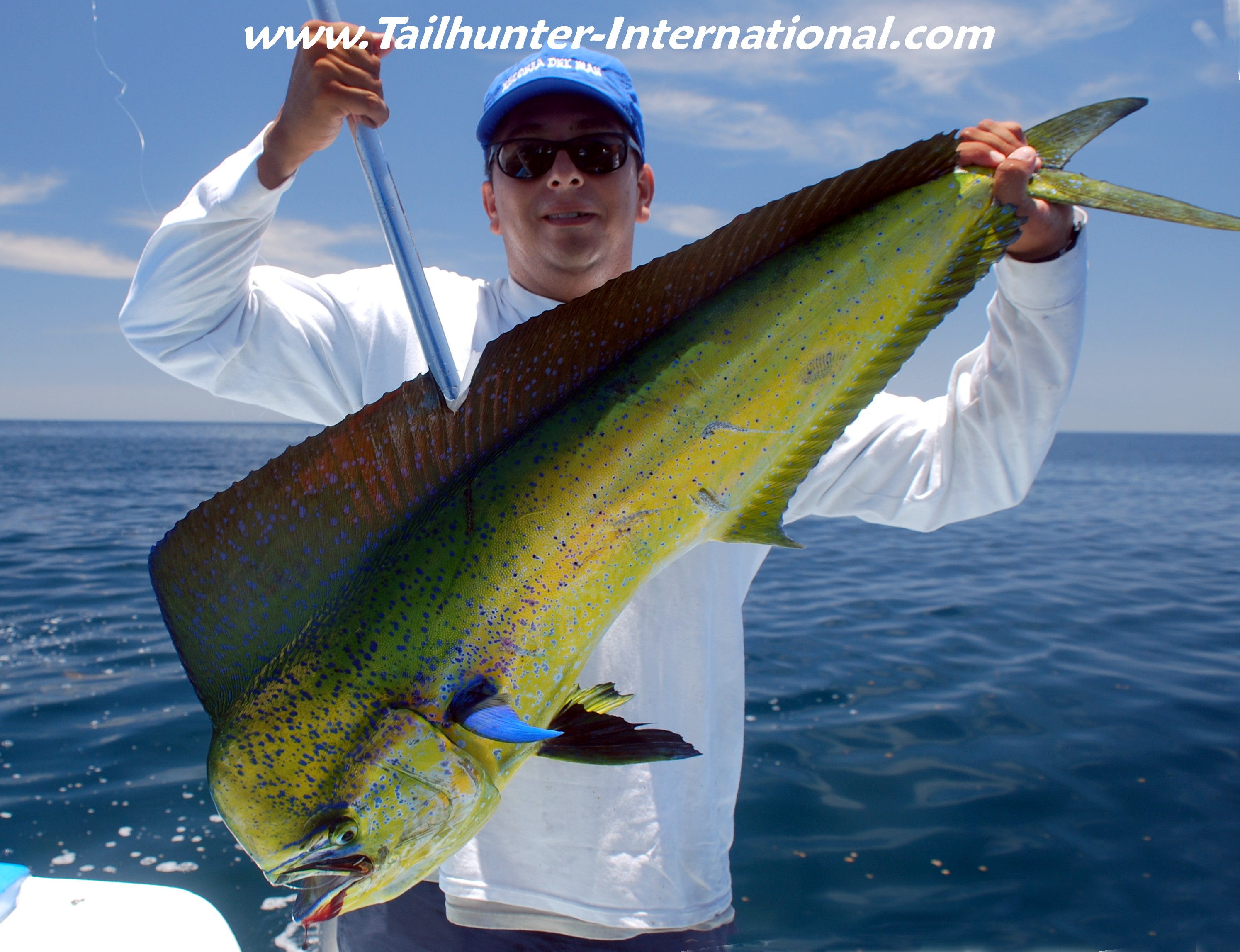 Tihs is the first week that dorado bit consistently. Not surprisingly, the waters edged over 80 degrees too and the winds calmed down. hmmmm...funny how that works! But the week started slowly, but by mid-week the counts were going up with mostly smaller fish in the 5-10 pound category, but as the week went on, there were more 20-40 pound fish in the counts and hardly anything prettier than a lit up mahi on the hook like this one taken off Espiritu Santo Island this week.