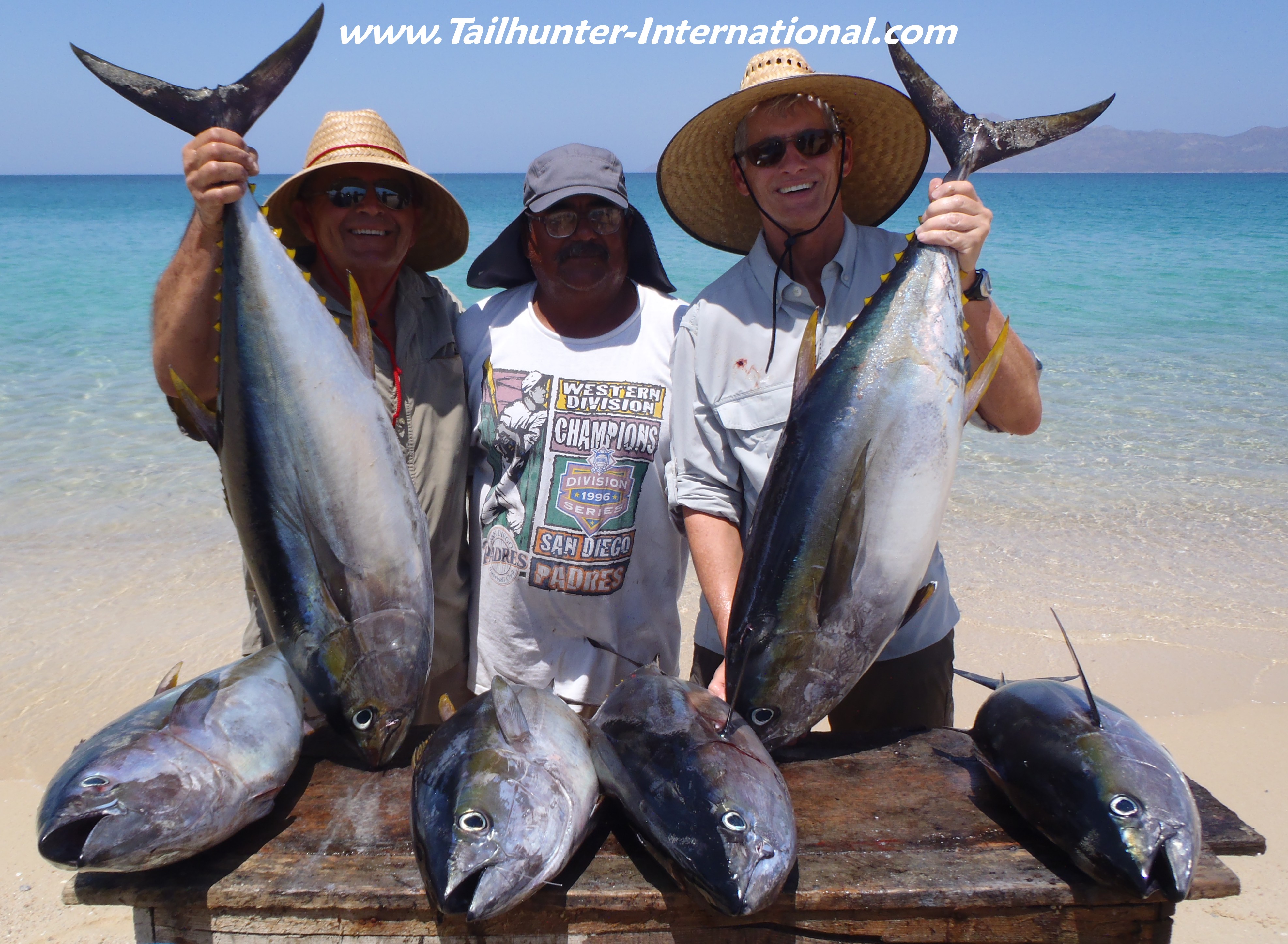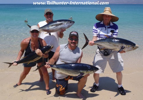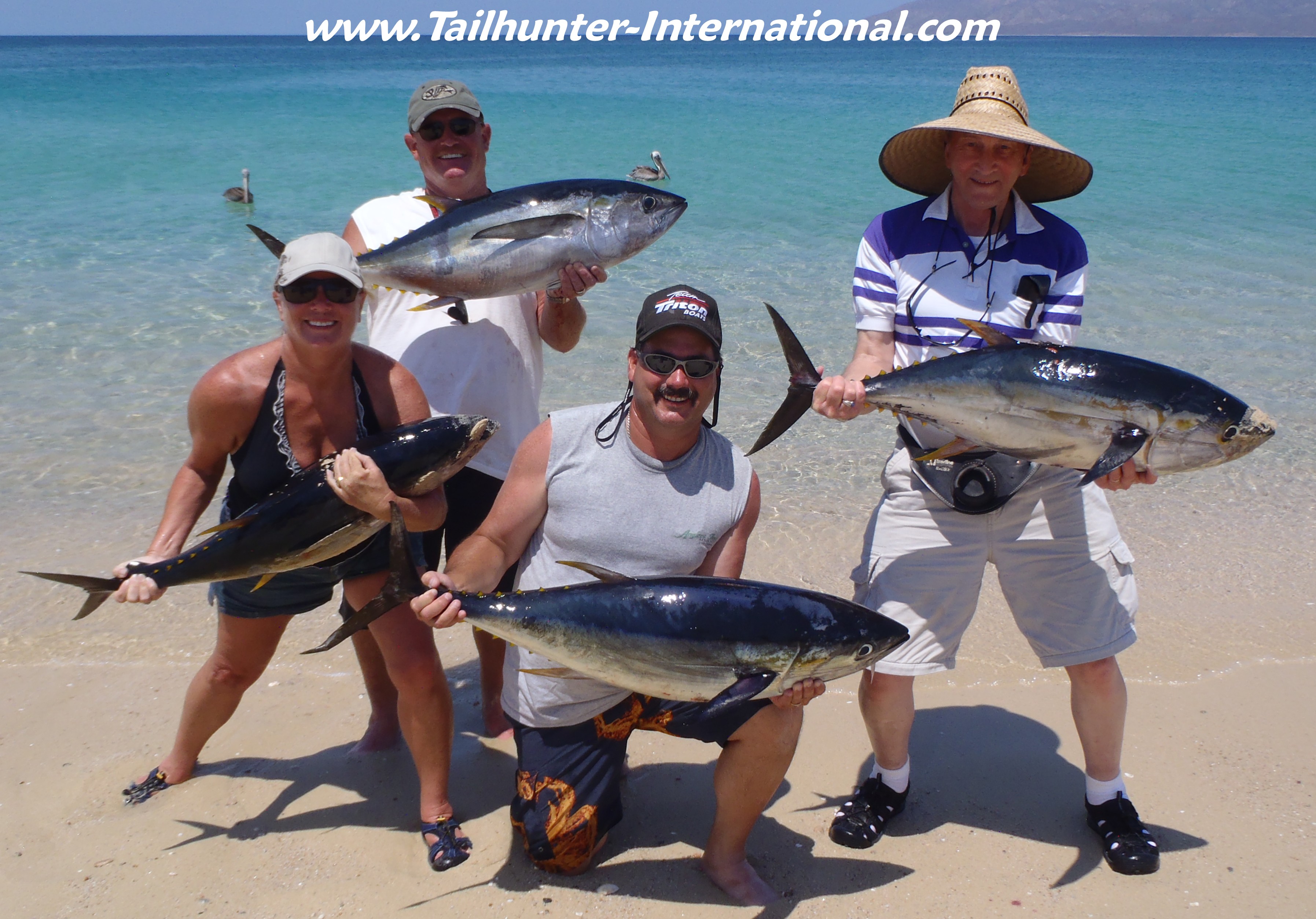 For our Las Arenas boats, the tuna came back nicely. They were squirrelly at times with the bite taking off early one day then very very late the next day. Another time, they would eat only small sardines fished live and the next day they would only eat dead sardines chummed in the water. Another day, they would eat only slow trolled sardines or larger caballitos. Talk about picky! The secret was just hanging in there and keep trying a bunch of things until something worked. Also, it meant working through several dozen bites of big feisty bonito that would tear things up. Some days, our pangas would get 2-4 (20-40 pounders) tuna but would also nail several dozen bonito too which meant for a really tiring day! Lots of smiles most days.