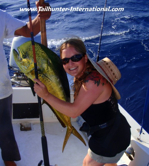 We had alot of great couples visit us this week. Kim and Matt Hoey pose with some of their catch after their first of 3 days fishing with us. Kimber has a dorado. Matt hoists a 25 pound tuna.