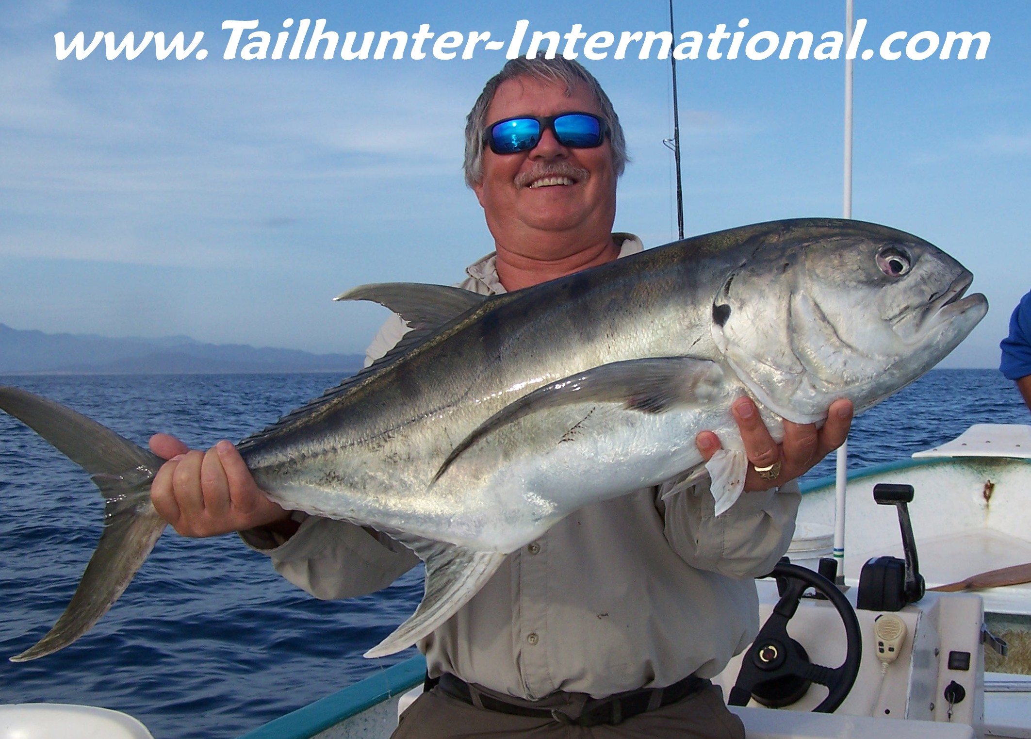 There was some nice variety this week. Our amigo, Don White from Oregon, holds up the kind of jack crevalle we got this week. Related to roosterfish, yellowtail, pompano and amberjack, the jack crevalle schools come rolling up close to the shores and are voracious and tenacious feeders and fighters. They just don't taste very good so they're great sport, especially on light tackle, but most get released.