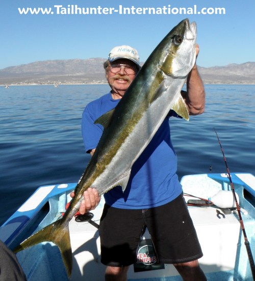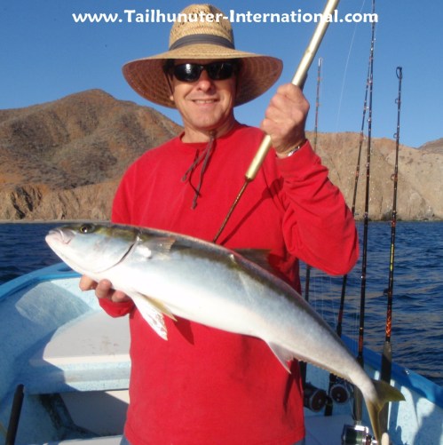 Bob Solee, come down several times a year to see us here in La Paz and seems to always get a personal best or something unusual. Yellowtail were on his "bucket list" and as luck would have it, he took one of the few yellowtail of the week fishing with our Tailhunter Las Arenas fleet. Bob is from the Portland Oregon area and is a custom fishing rod maker specializing in 3-pc. travel rods.