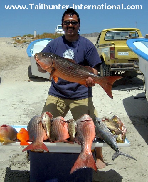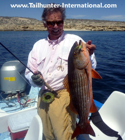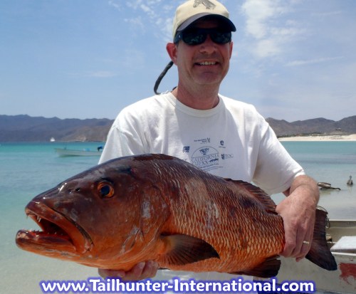 Easy to see why this is called a dog-tooth snapper. We call 'em pargo. John "JD" Drucker from Arizona is one of our La Paz regulars and comes several times a year. He had other fish that they never moved out've the rocks!