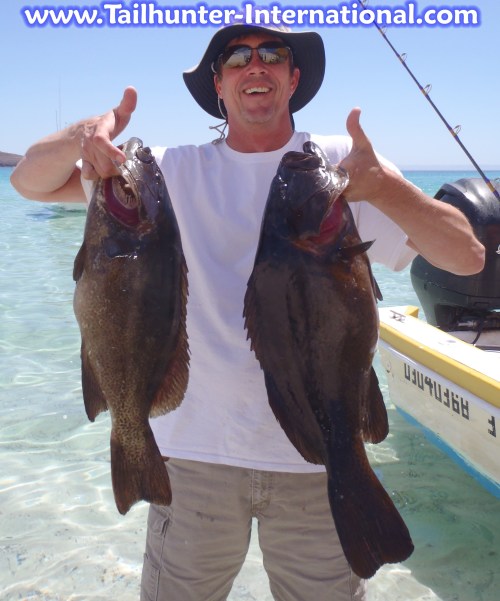 That's ALOT of fish! Oregonian Don White had a knack for big cabrilla and other rockies this week including this hefty pair shown here with our Captain Alfredo. Don was fishing north of La Paz around Espirito Santo Island.