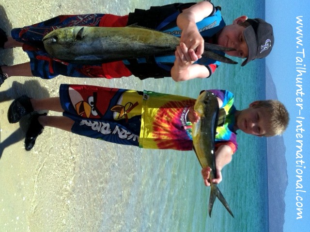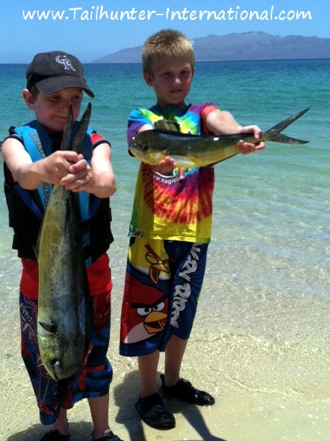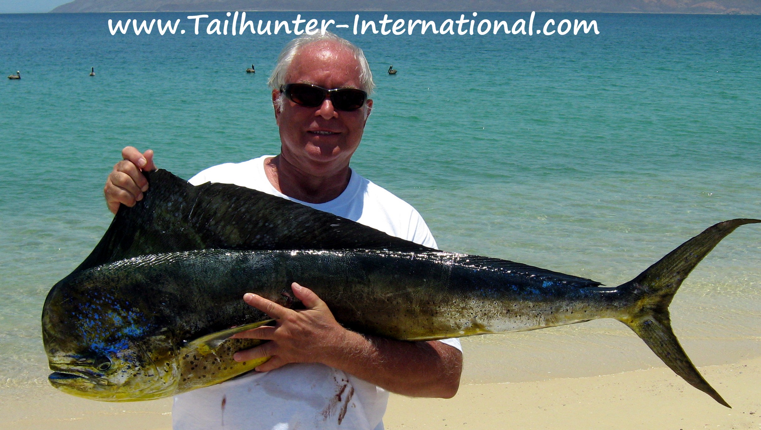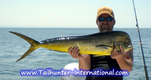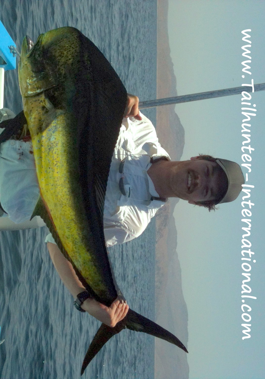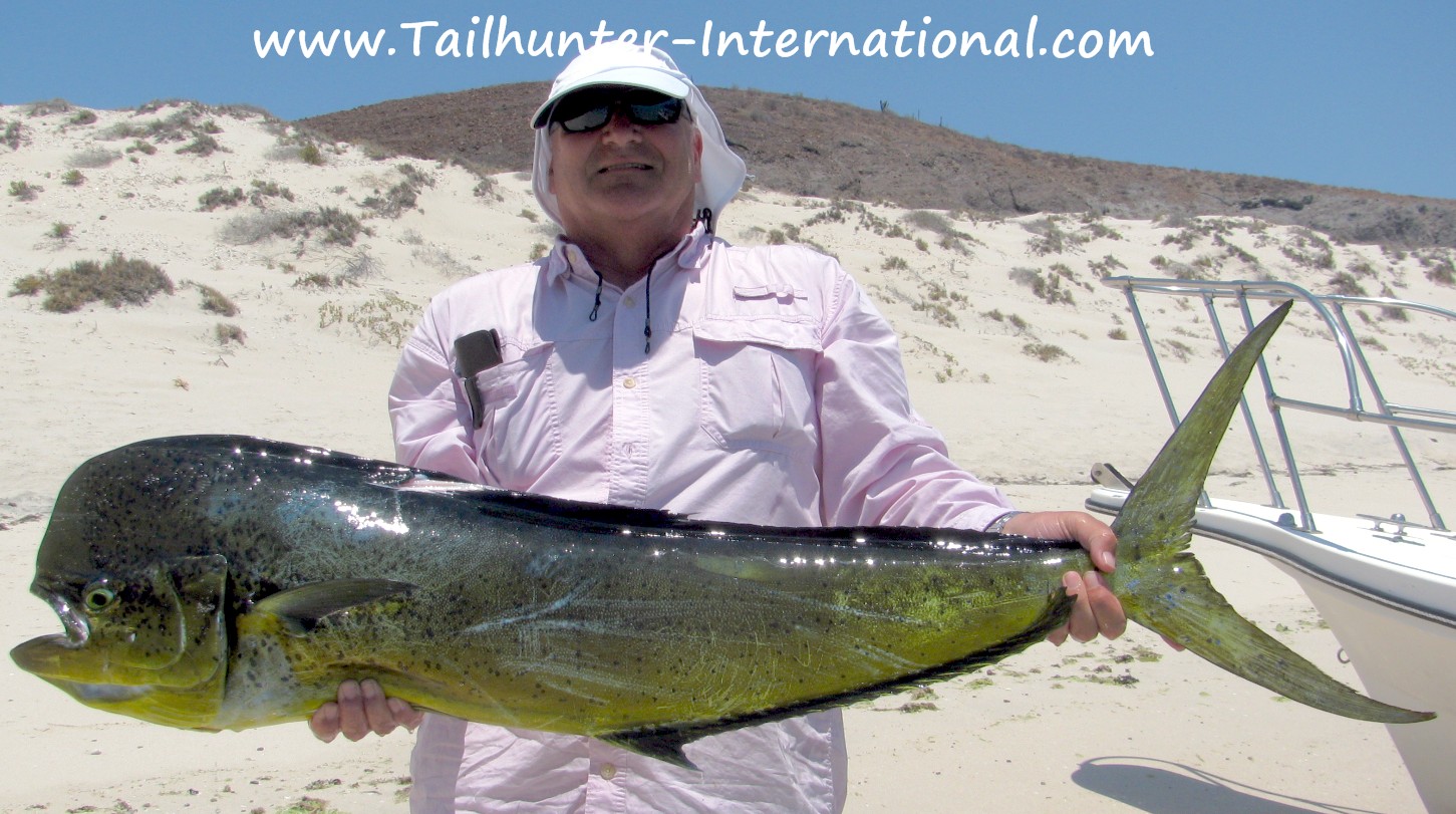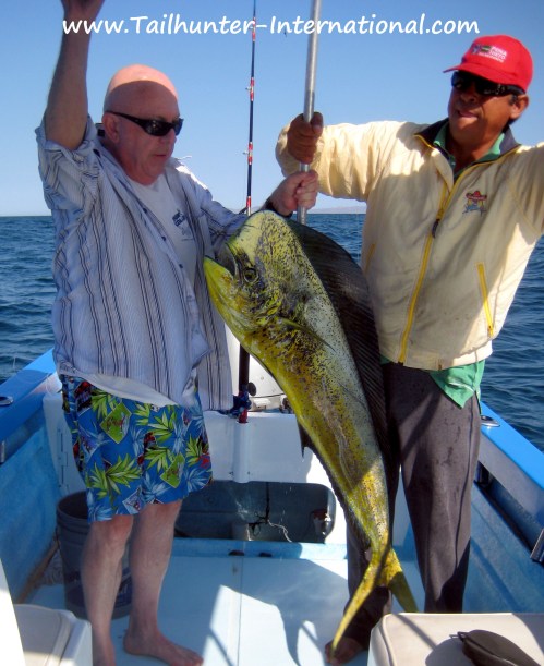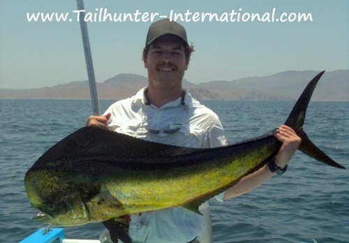 Cameron Hutcheson from Orange Co, CA is another of our clients who had a great time on their first trip…roosterfish…yellowtail…dorado! All of them were on their list they were hoping to catch. Cam holds up a big bull dorado he caught north of La Paz!