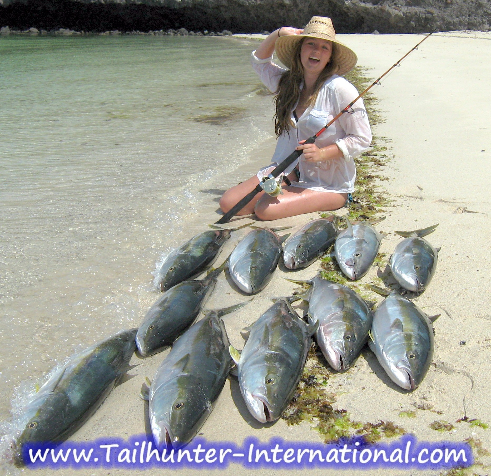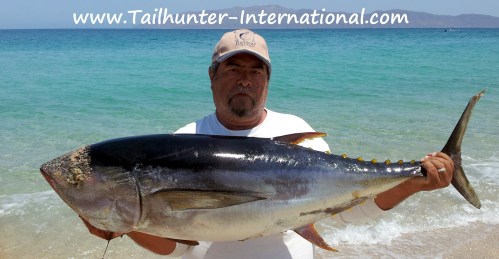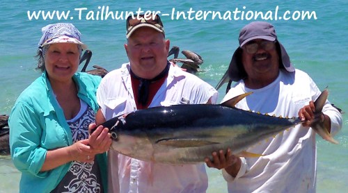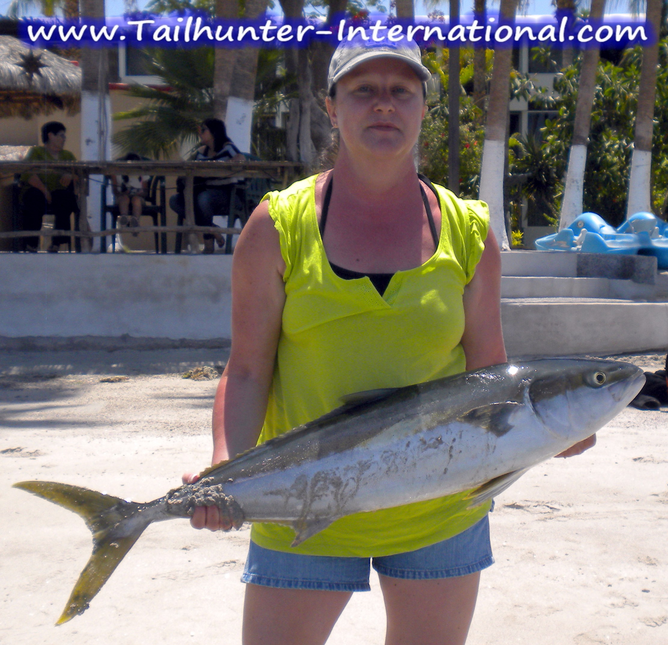TUNA? Yes! Mary Wehner always seems to do well. She and husband, Dave, went just east of Cerralvo Island with Captain Victor and found a couple of big dorado as well as this nice slugger yellowfin tuna! Everything just seemed to finally get better about mid-week!