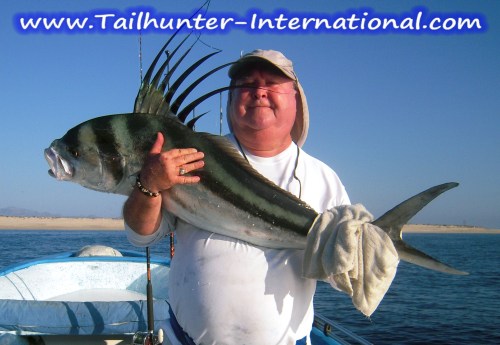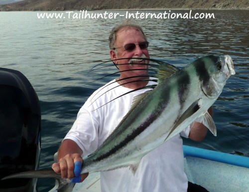 Talk about a fishing vacation! Larry Watkins from Los Angeles decided to go “all in” and spend two whole weeks with us to get get ONE ROOSTERFISH! Well, he picked a good time because the roosterfish were tearing it up and he got this this colorful rooster just off Cerralvo Island. Some days the boats averaged 4-8 roosters per day in the 20-60 pound class. Almost all fish, including this one were released.