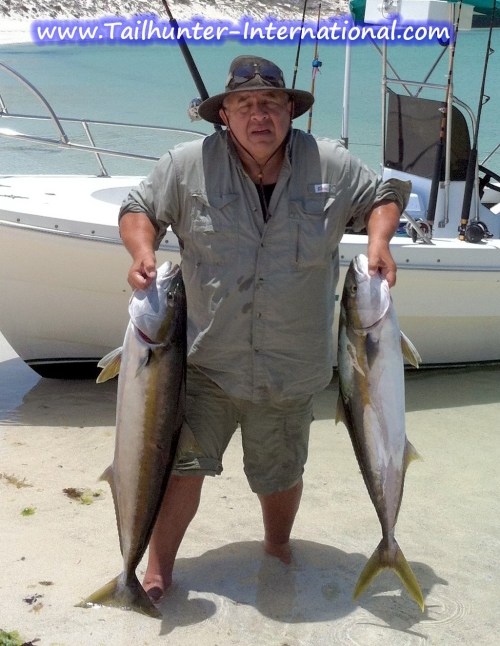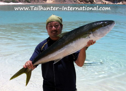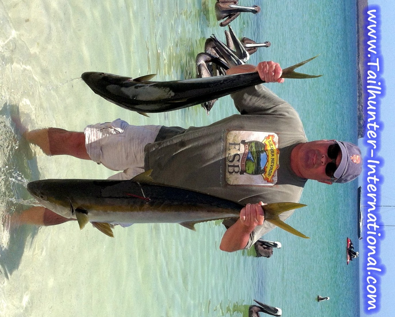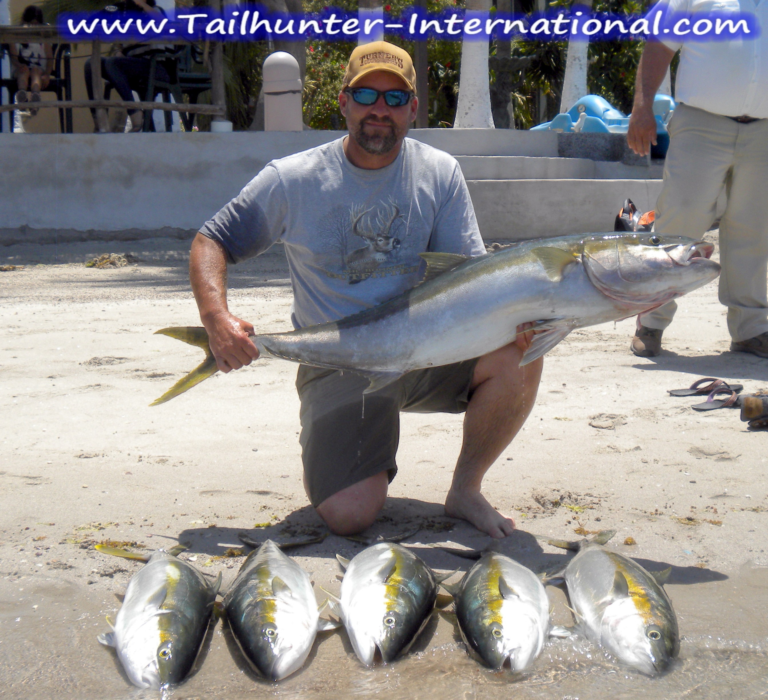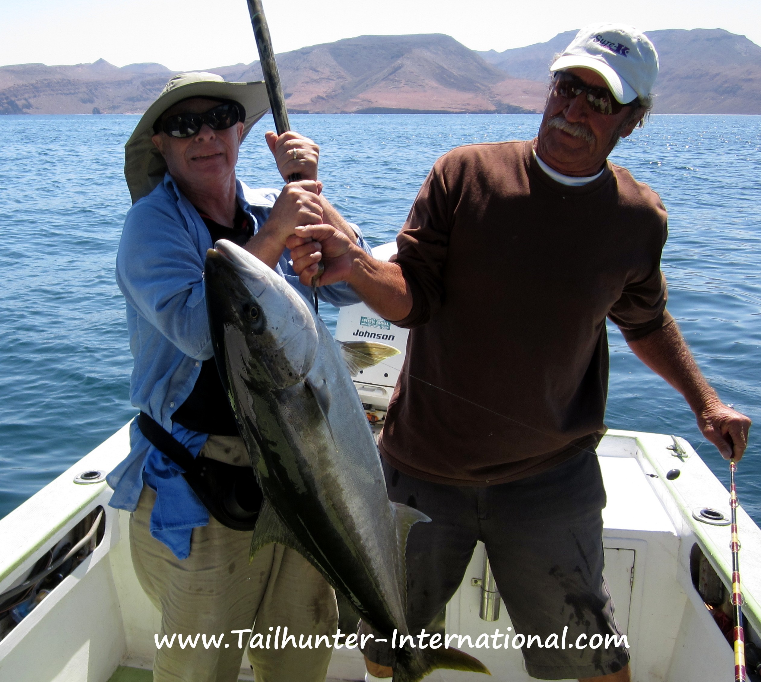 Monster yellowtail for Dr. Norm Harris who gets a hand from Captain “Fettucine” Alfredo off Espiritu Santo Island. Great catch! Doc is from Santa Ana CA
