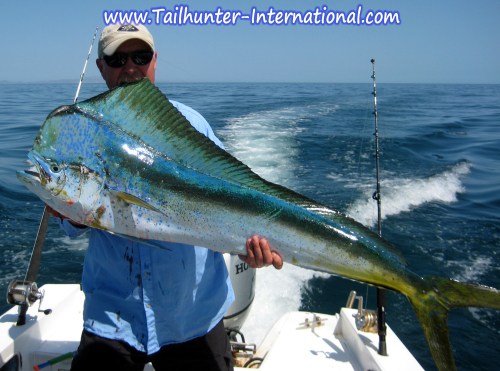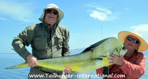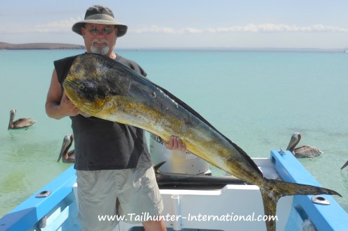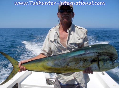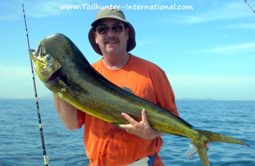 One of our long-time amigos, Tim Blagen, holds up his catch-of-the day…a big bull dorado that inhaled a bait and bent the rod. Tim had a few banner days with our La Paz fleet.