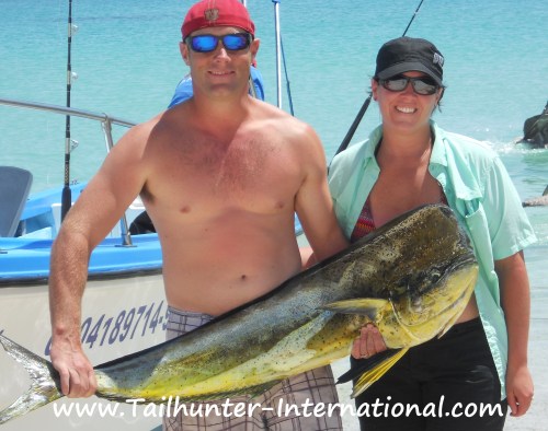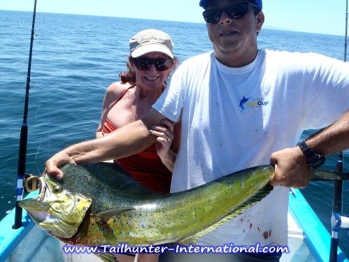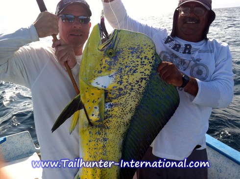 The highlights for the past week were the continued catches of larger dorado. Fish in the 30 to 40 pound class were not uncommon and many lost as well as the “huge giant fish that bit and broke up.” (Or course to many anglers EVERY large fish is a “fifty pounder!”) But, even our captains verified that there were some big boys out there that simply left the clients out-gunned.