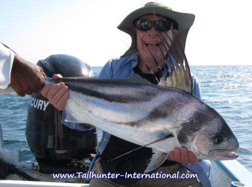 Our two college-professor friends, Llew Williams from Florida and Prof. Mark Marcus from Washington, tag-teamed this big boy off Las Arenas. The fish looks like it’s ready to bite Marks face!