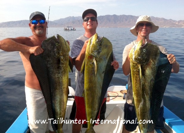 A trophy trio for Brent, Dan and Matt Fischer who got 6 of these big dorado on a day fishing with our Tailhunter La Paz fleet near Espirito Santo Island.