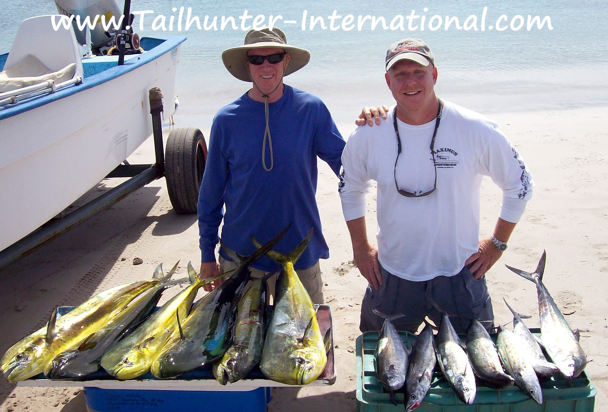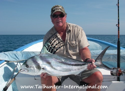 But not far from shore from the Arenas lighthouse down to about Pescadero, we’re encountering dorado, roosterfish, nice batches of sierra, pargo, cabrilla, rainbow runners, pompano, bonito and jack crevalle. All of this can make for a lot of action in a fishing day!
