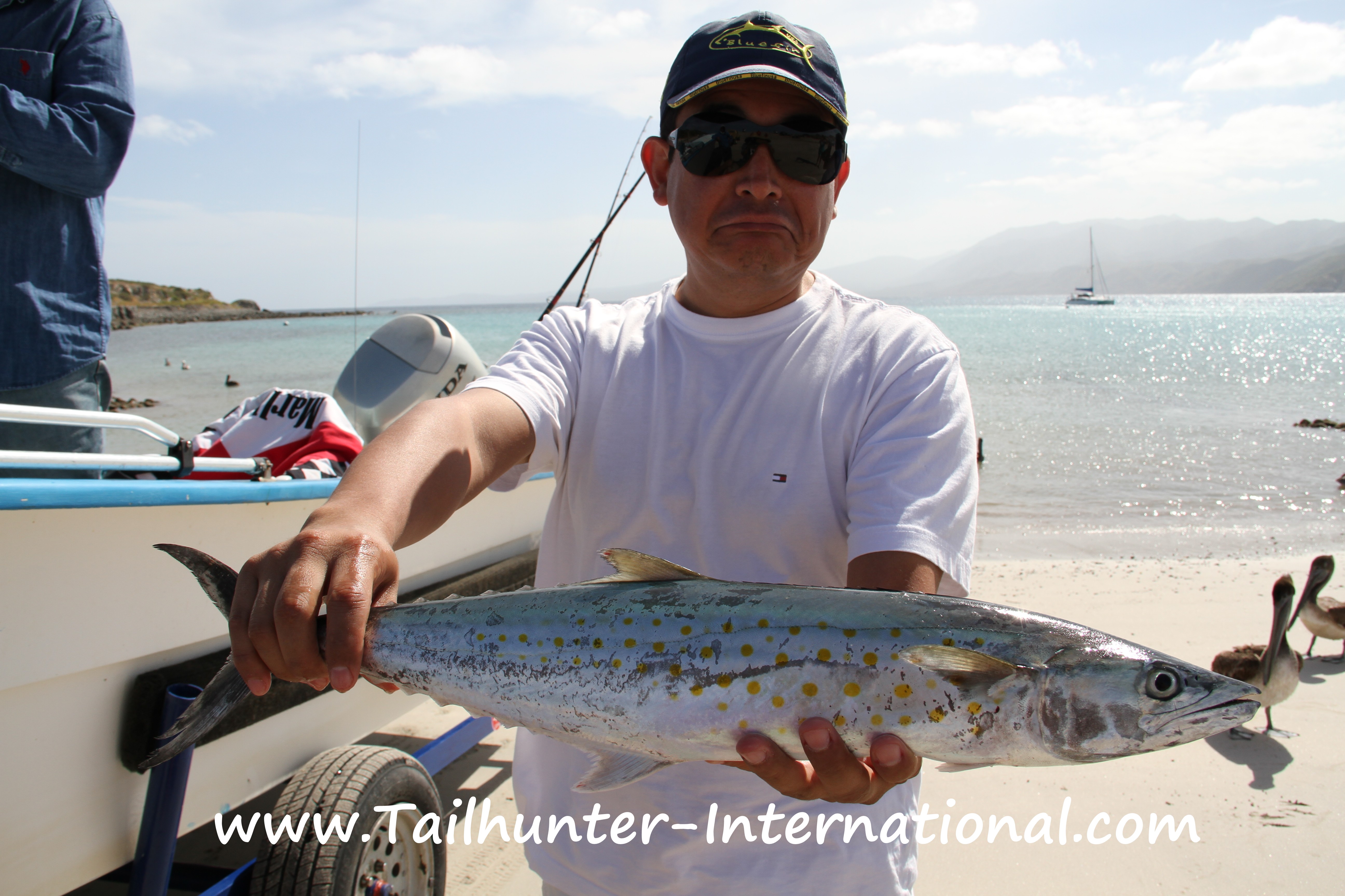 There are days when you can catch these all day or a quick limit within a short time! Sierra schools have moved into the shallow drop-off areas and live bait on a thin wire or else trolling small rapalas or yo-zuris or anything shiny will get a viscious strike! Great eating fish and a favorite for ceviche!