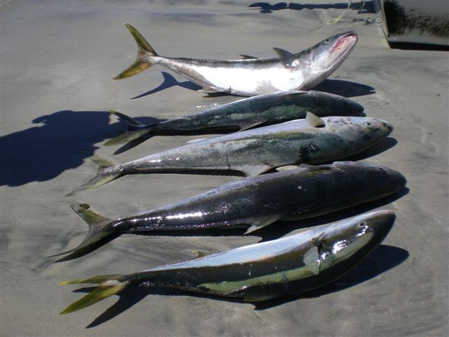 Commercial fishermen started getting into some of our seasonal yellowtail this week as shown by some of the catch laying on the beach. Unfortunately, we were doing more fishing than catching as the powerful jacks we hooked all broke off.
