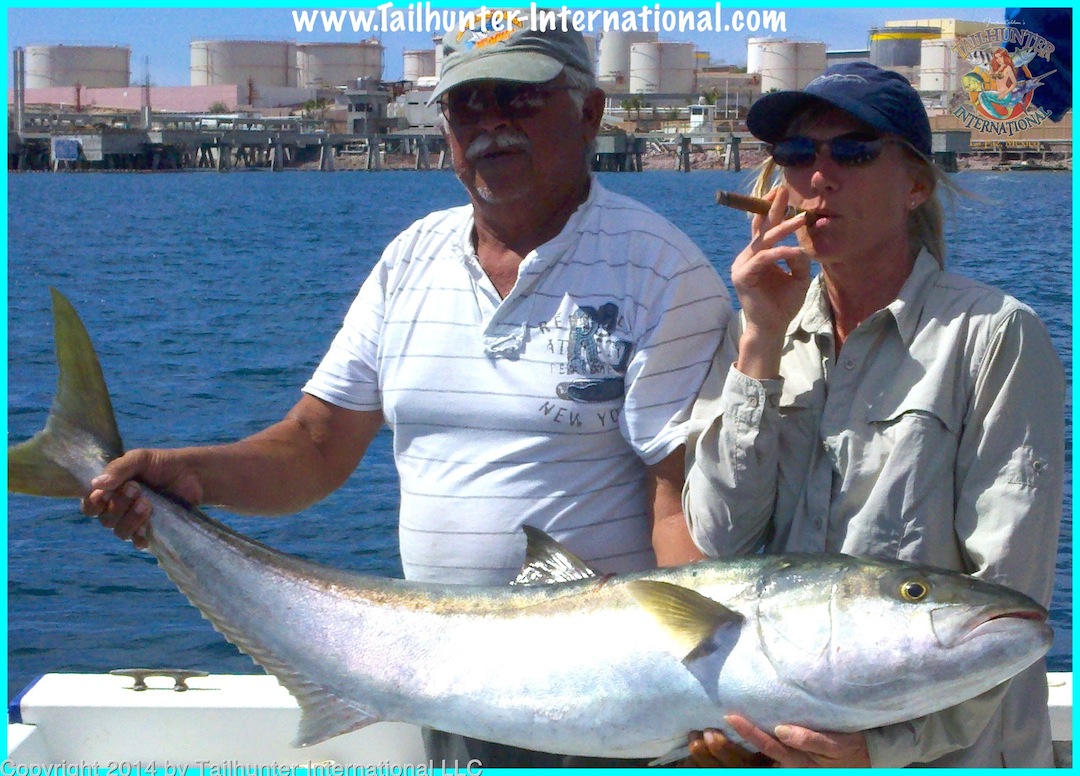 Captain Boli from our Tailhunter La Paz fleet helps out young Peter Koschnitzke from snowy Colorado who earned himself a cigar and a beer from dad for nailing this slugger-sized yellowtail near Espirito Santo Island. I was told it tasted great with manga salsa!