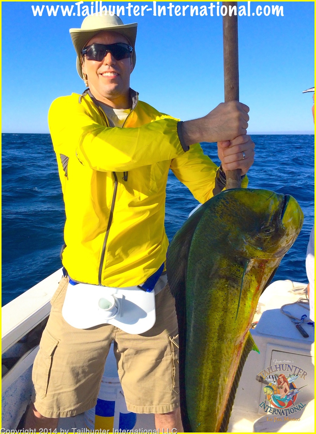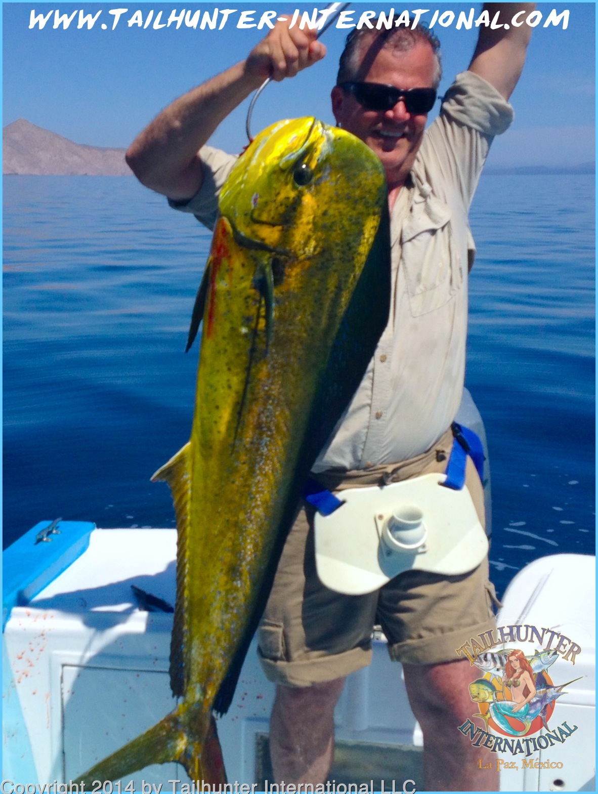 Great big bull dorado for Shawn Silk from San Mateo CA. Shawn was on his first trip with us and nailed this nice fish north of La Paz just outside of La Paz Bay north of town.