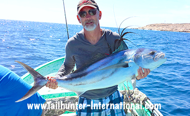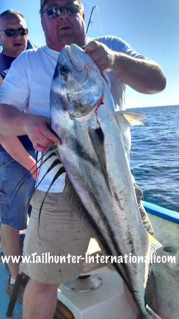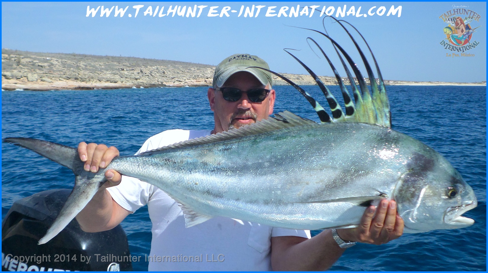 Jeff Jiles looks a bit surprised, but no doubt he’s got a trophy roosterfish with Captain Jorge just south of Bahia de Los Muetos. Jeff came to visit from Utah.