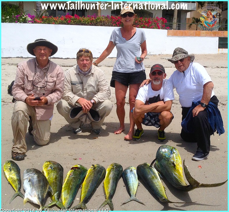 Not a bad day of fishing for the Loveless family. Russ Loveless…Jeff and Shirleen Jiles…Tony Loveless and dad (Shirl) in the hat with a batch of nice dorado on the beach in front of La Concha Beach Resort. Great fun family.