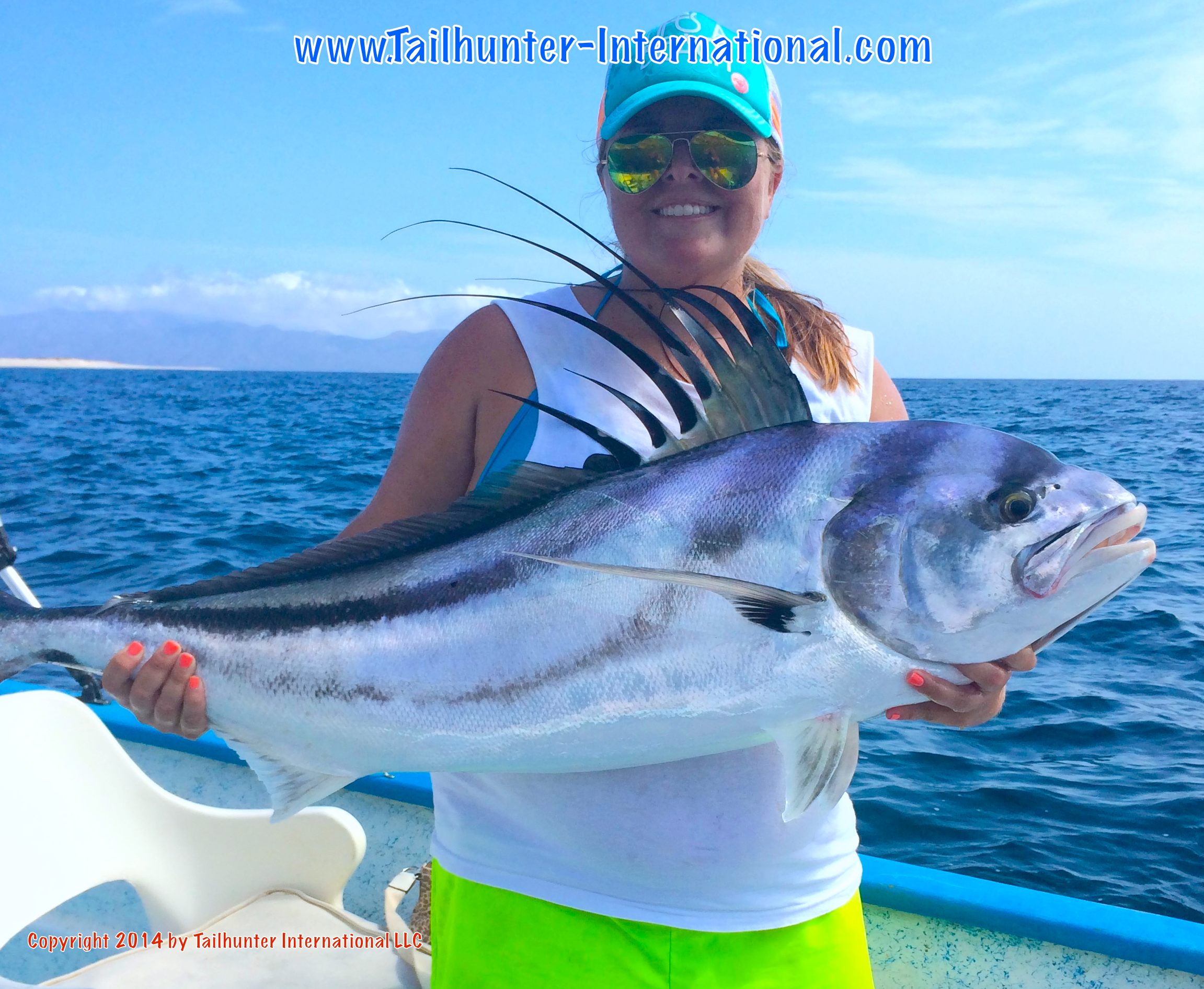 When she’s not vacationing, Katie Nichols from Florida actually skippers a commercial fishing boat in Florida for her family getting lobster and crab! She’s pretty good with roosterfish too! She caught and released this fish near Punta Perrico.