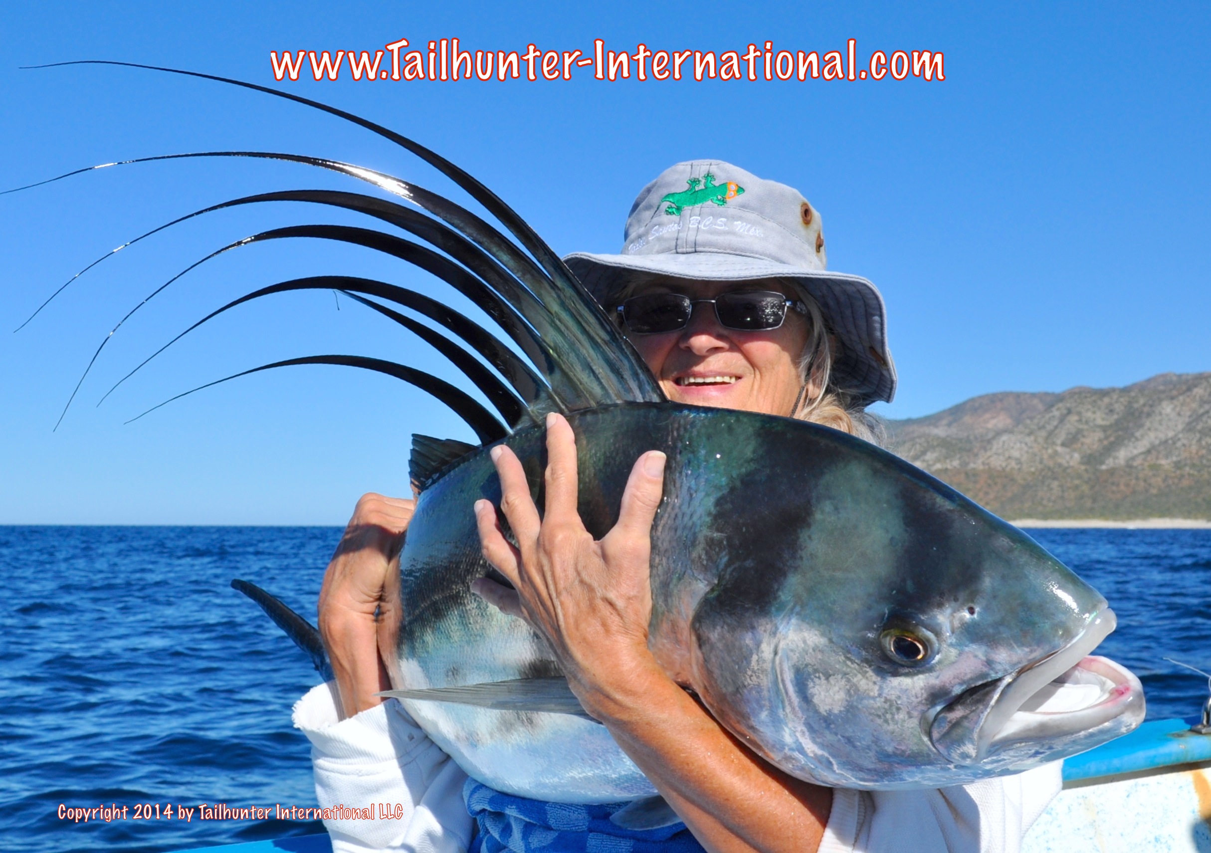 From Idaho taking a break from teaching school, Mandy Pollock let’s Tailhunter Capt. Boli struggle with this big yellowtail from the north side of La Paz. Still a few yellowtail around and this was Mandy’s first trip to La Paz.