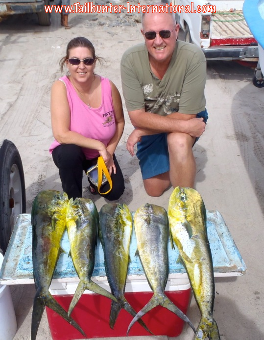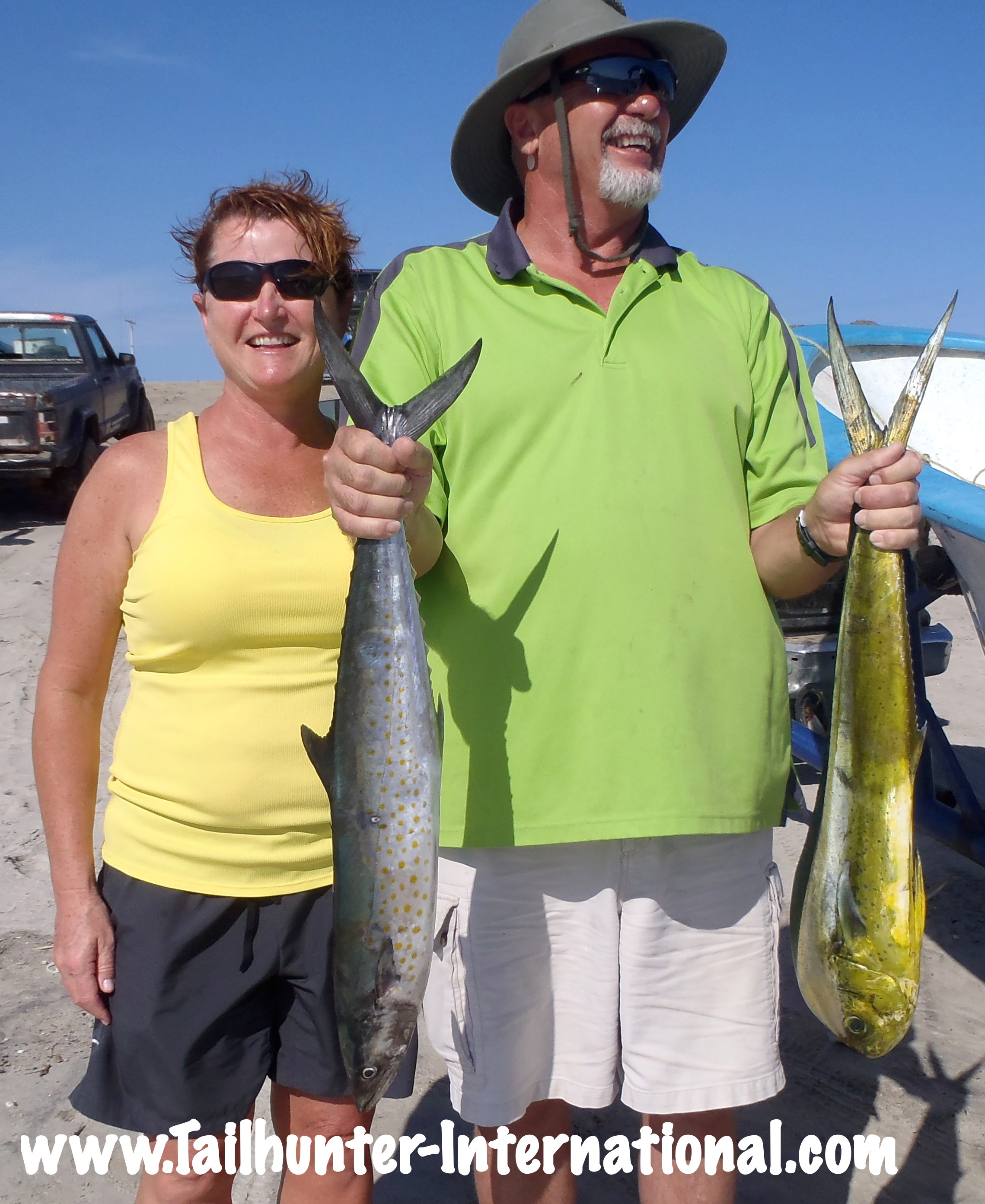 First timers, Mike and Robbi Caray with one of several big dorado caught with our Tailhunter La Paz fleet.