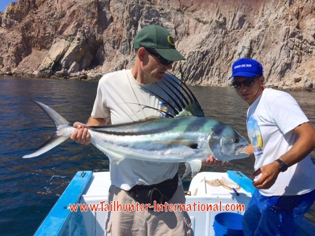 Normally, he’s out white-water paddling, but Mike Dietzman from Oregon was just with us on his first time salt water fishing and he hooked into this nice sailfish north of La Paz.