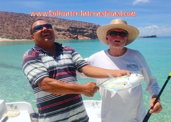 I might have to frame this photo! I don’t have many photos of popular Captain Boli giving off a good belly-laugh but he and our amigo, John Olson recently retired from a career with Disney, got into a school of small jacks and roosters and had themselves a ball.