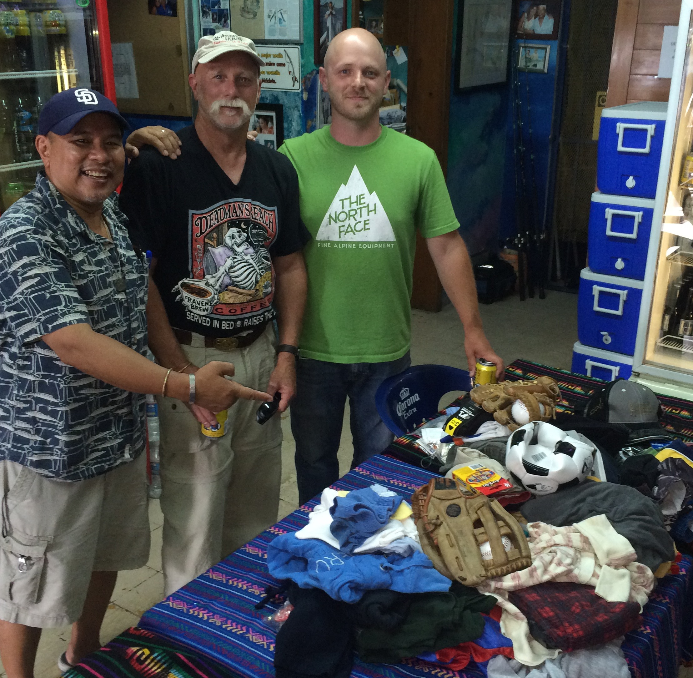 I’ve known Ken Chaplin from Oregon for many years as Ken is a S. African hunting outfitter. He got to finally bring his son, Dustin, down to get some fishing in but packed a few ice chests with clothes, school supplies and sporting goods for the kids! Wow!