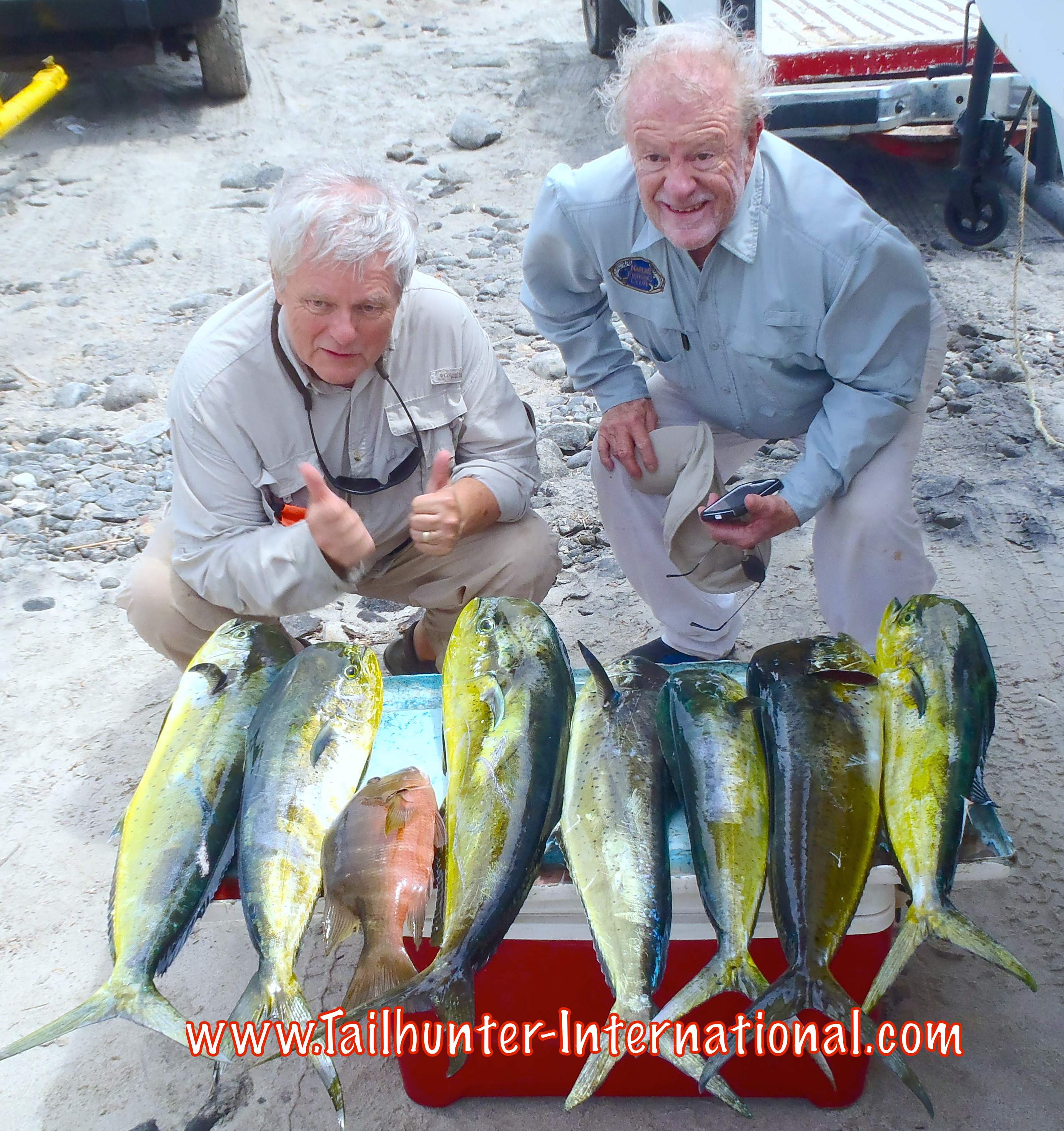 Our “TEAM PROFESSOR.” Two of our favorites have been visiting us for years. Professor Mark Marcus now lives in Tennessee and Professor Llew Williams now calls Florida home. They got a nice rack of dorado and a pargo fishing out’ve Bahia de Los Muertos.