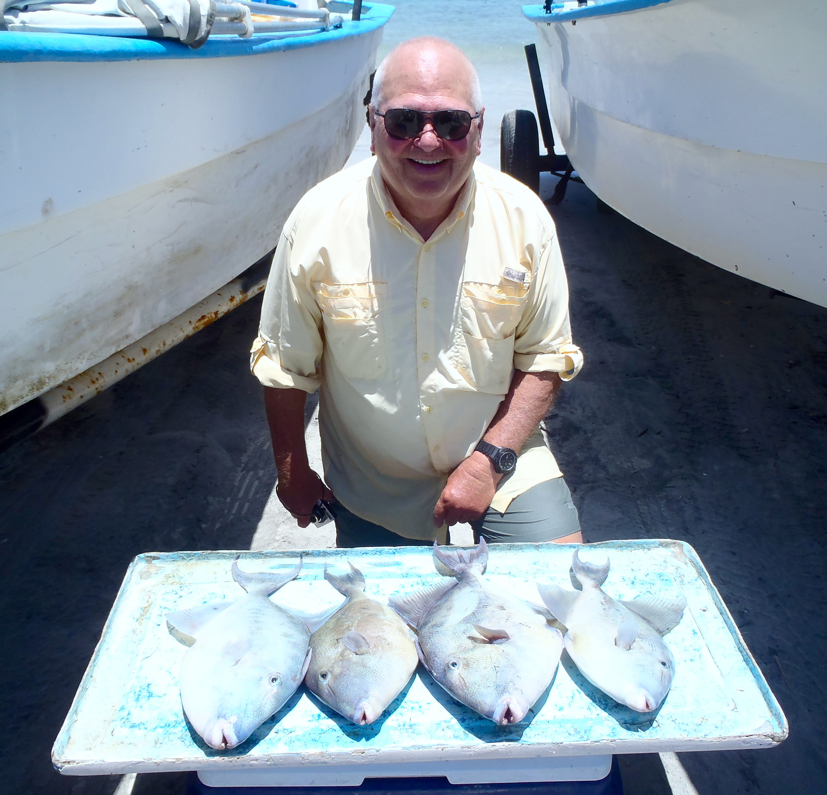 Nothing wrong with this catch! John Ehleres with some HUGE triggerfish he brought back to the Taiilhunter Restaurant and had us whip it into a huge plate of ceviche that he shared with Captain Pancho the next day.