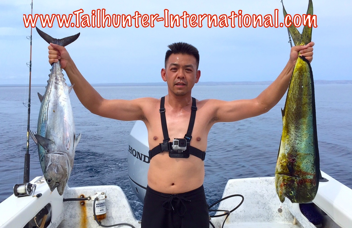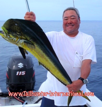 Thai Foo holds up a nice bull dorado that ended up being brought back to Tailhunter Restaurant to share with his amigos!