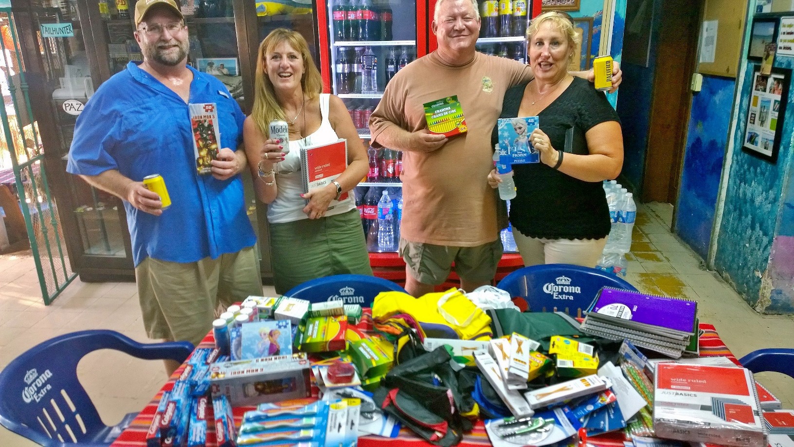 Big shout out to our “Pack for a Purpose” good guys. Brian and Marie McClanahan and Kip and Sue Slaugh all from the Salt Lake City area in Utah, hauled down several duffle bags filled with school supplies, health products (toothbrushes), notebooks, backpacks and other much-needed things for our kids. Vong Mekdara also carried down a load of stuff. As well, Steve Hartsook and Mike Jordan who have been visiting us for years filled up with great kid’s stuff. (Photographer’s error…the photo didn’t come out…but they deserve a big shout out too!) Just in time since the school year is just starting down here and many kids don’t even have pencils. We’re grateful for all the many many amigos and clients who have brought stuff over the months for the orphanage, schools and women’s shelters. You’re the best!